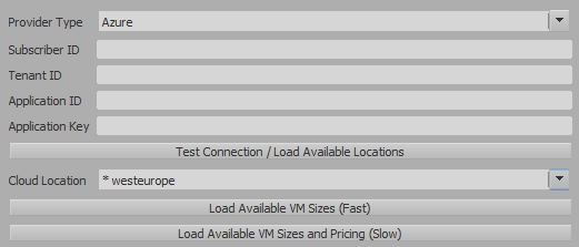 5.) Click Load Available VM Sizes. This fetches all available VM sizes for your chosen cloud location.