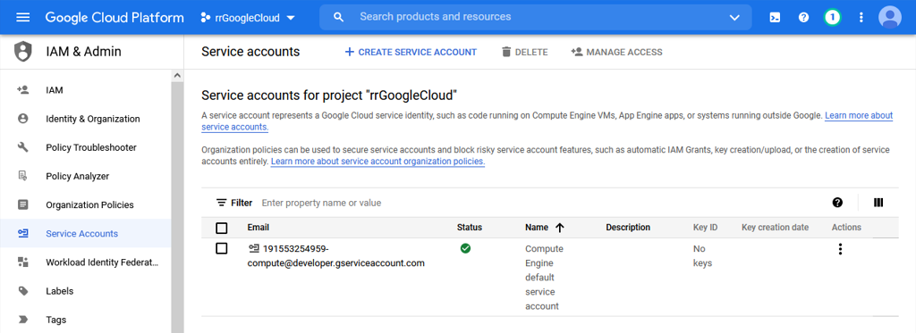 1. Open https://console.cloud.google.com/iam-admin/serviceaccounts to access the service accounts.